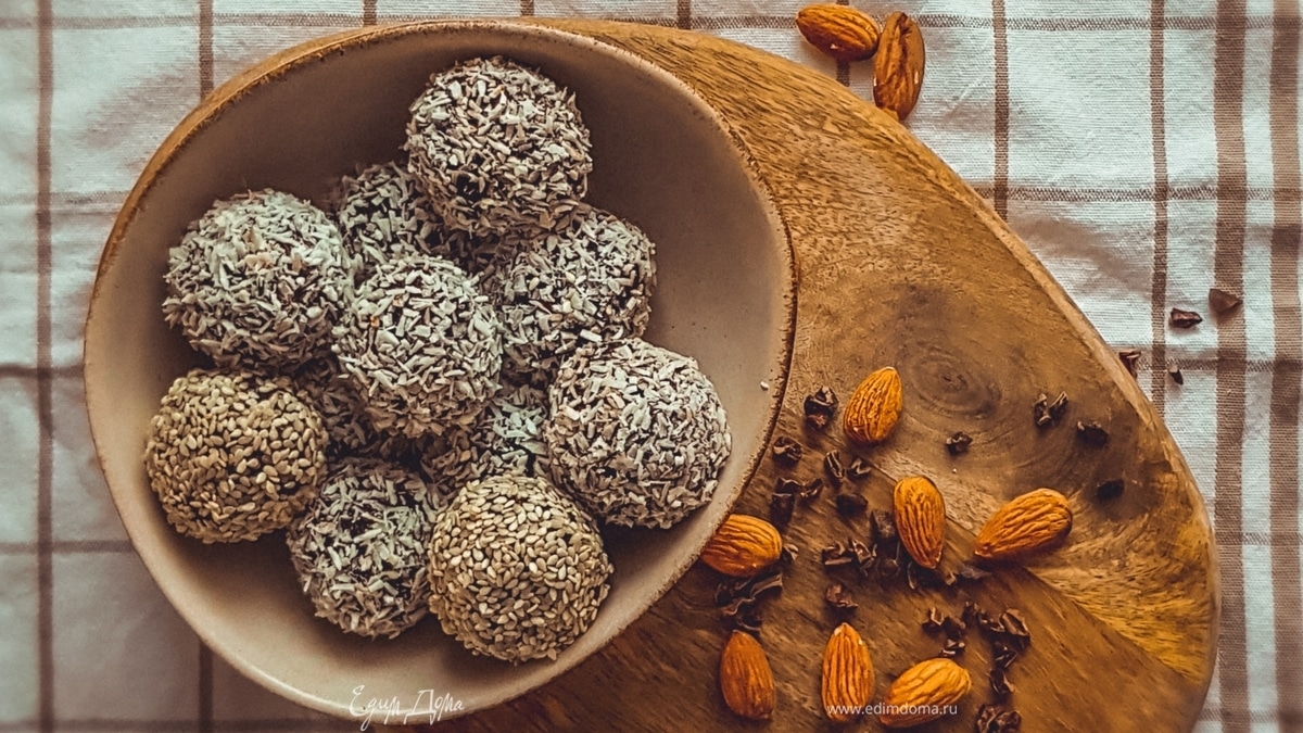 Перед обваливанием убедитесь, что кунжут или кокосовая стружка сухие — так они лучше прилипнут к поверхности конфет